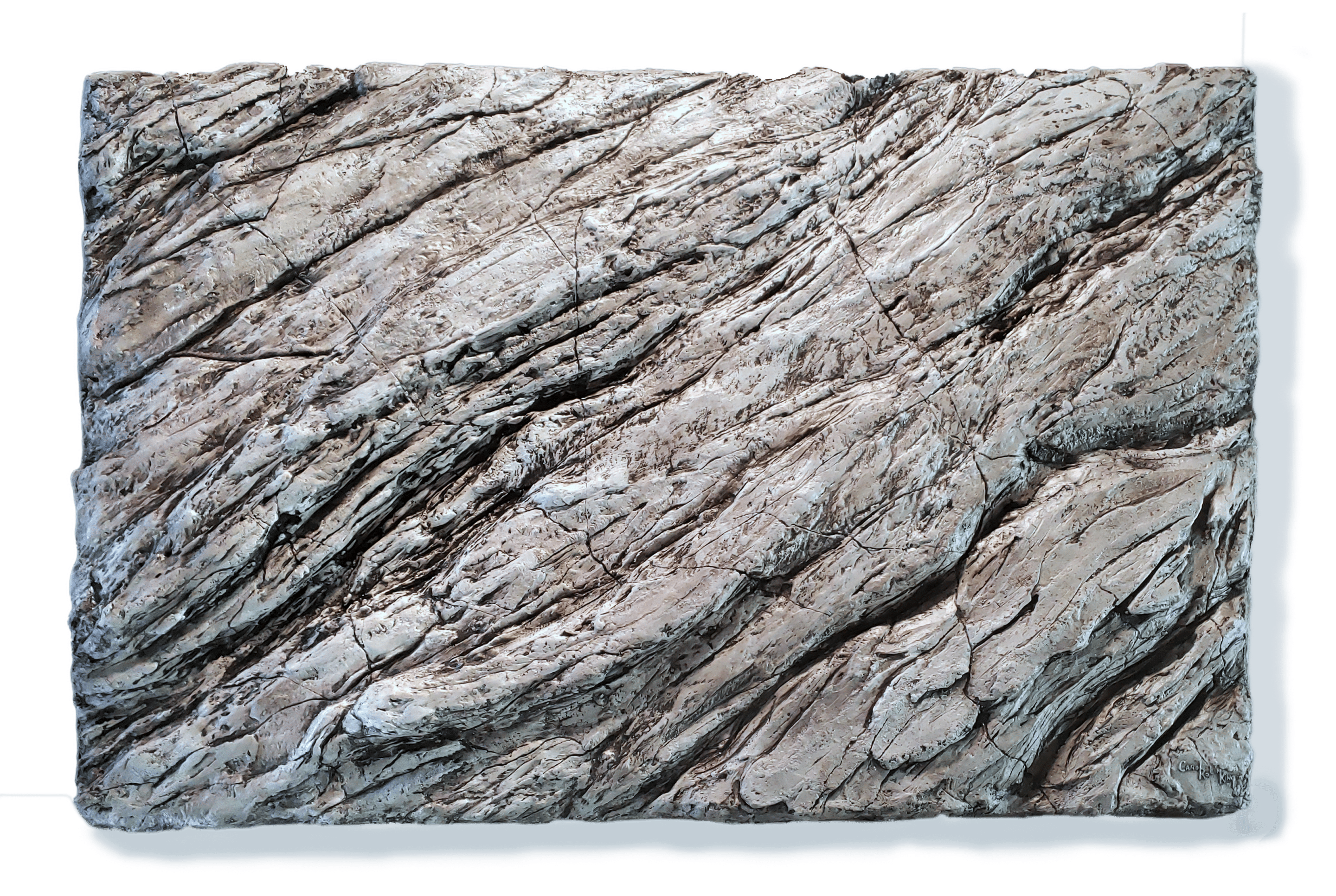 I have always been in love with elements of nature like wood and stone. This is my first attempt at a hanging stone piece of art. I love the texture, the depth and all the outcroppings and the little cracks that draw your eye in to see what may be hiding in there. It was such a pleasure to create.