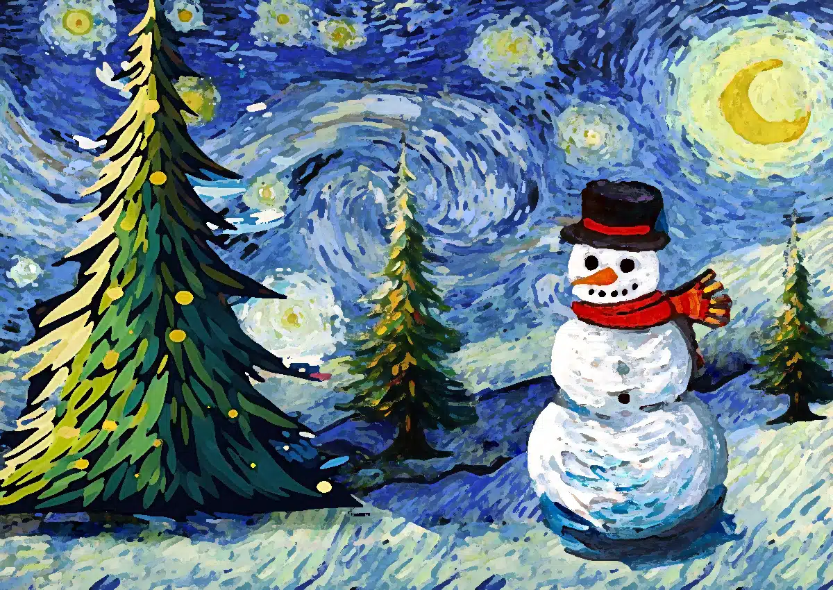 Lets paint  Get in the Christmas mood with this fun Van Gogh style painting with a Starry Night sky.