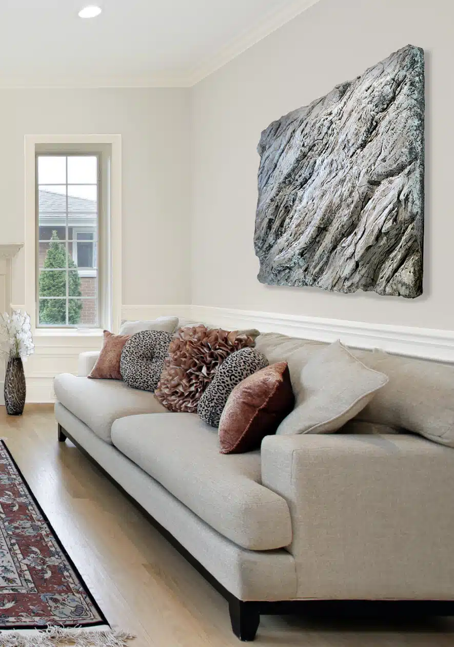 I have always been in love with elements of nature like wood and stone. This is my first attempt at a hanging stone piece of art. I love the texture, the depth and all the outcroppings and the little cracks that draw your eye in to see what may be hiding in there. It was such a pleasure to create.
