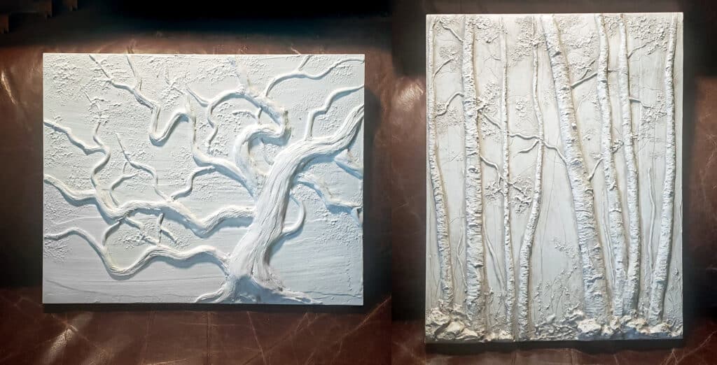 Class Content: You will LOVE playing in 3D with plaster! This class is a beginner introduction to the world of Plaster Relief. You will create 2 pieces in this class: A Birch Forest piece and a Twisted Maple piece. Plaster is a very fun media to work with and grants exceptional results. In this beginner class. You will learn how to use bags and pastry tips to apply the plaster to your panel and shape it with tools. You will walk away with 2 pieces of art that will WOW your friends!