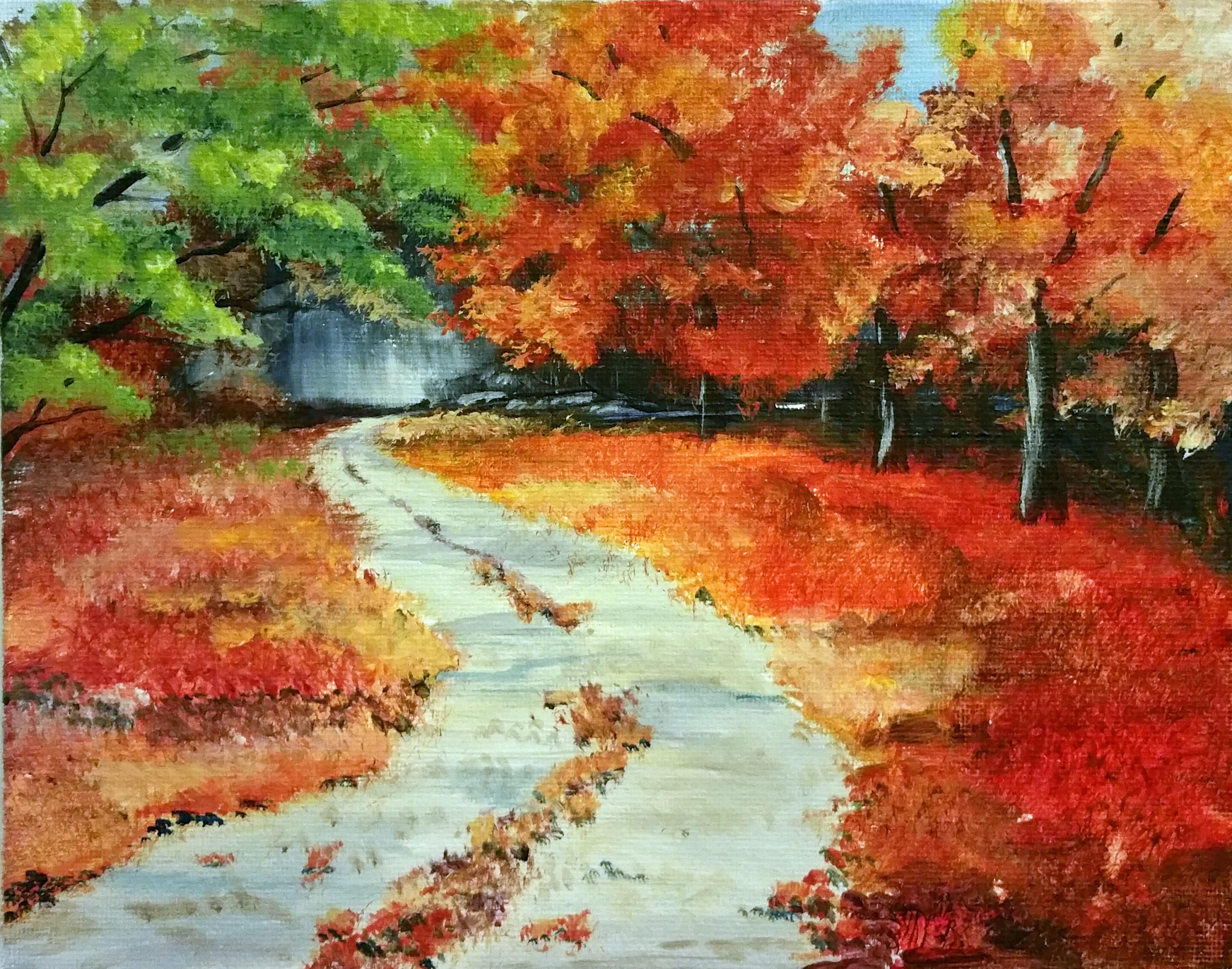 Bring your Pumpkin Spice Latte and lets paint this beautiful Fall scene!