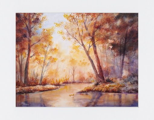 A giclee print is made by scanning the original painting and forming a digital image that is proofed by the artist. The prints are made by spraying archival inks rated from 99-200 years at millions of drops per second on watercolor paper. You’ll think you’re holding the original.